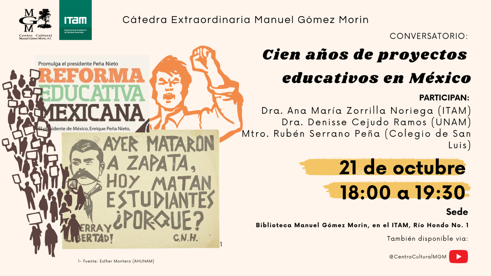 En el marco de la Cátedra Extraordinaria Manuel Gómez Morin, el Centro Cultural Manuel Gómez Morin y el Departamento Académico de Estudios Generales abordarán el tema ¿Hacia dónde van las instituciones mexicanas en el siglo XXI? con el conversatorio Educación: proyectos educativos en México