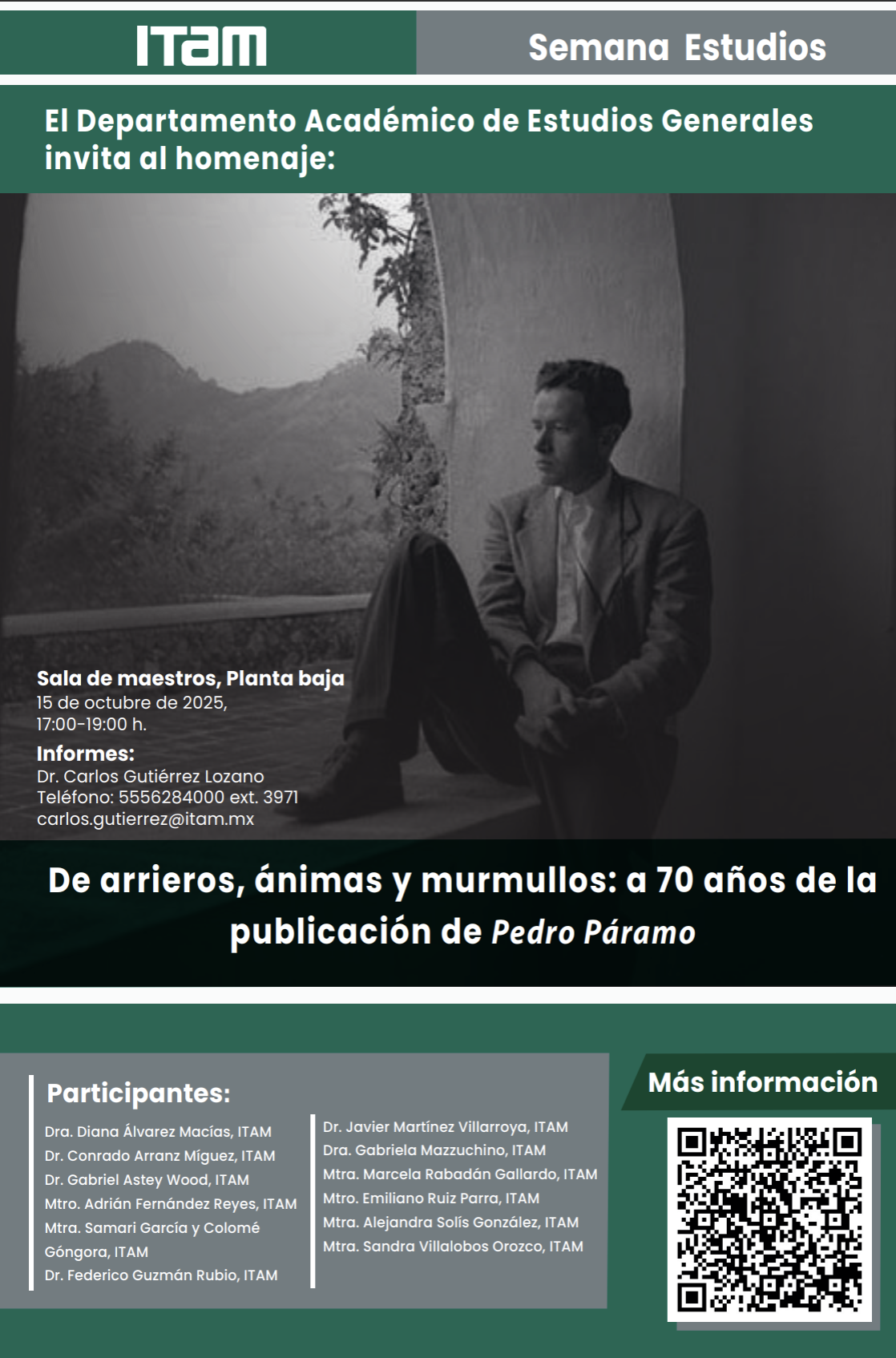 La lectura comunitaria titulada “De arrieros, ánimas y murmullos: a 70 años de la publicación de Pedro Páramo" celebra siete décadas de una de las obras fundamentales de la literatura mexicana y universal. El encuentro busca revivir la atmósfera única creada por Juan Rulfo, donde los ecos del pasado, las voces del más allá y la soledad de los vivos se entrelazan en un relato que sigue conmoviendo y desconcertando a generaciones de lectores.