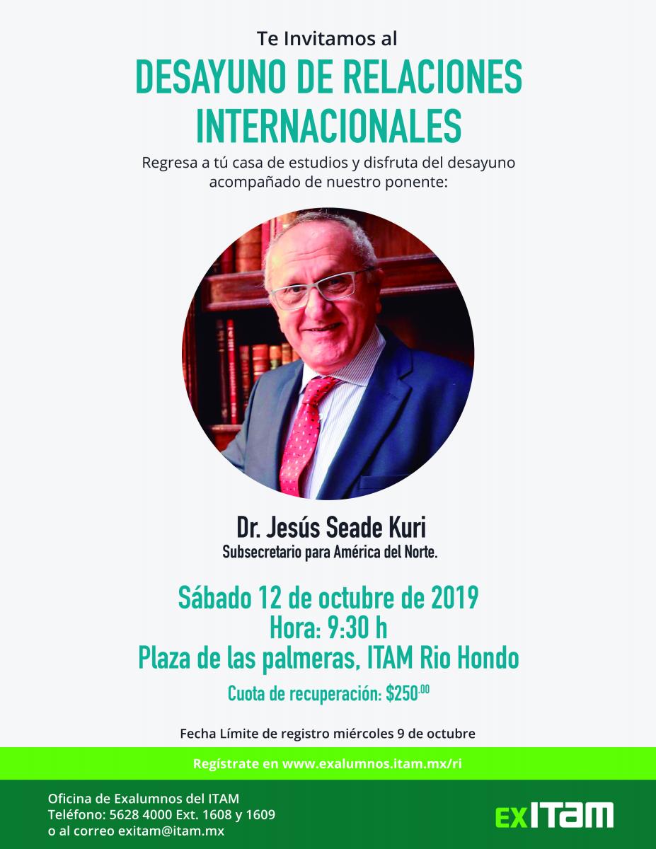 Te invitamos al desayuno de Relaciones Internacionales con nuestro ponente: El Dr. Jesús Seade Kuri, Subsecretario para América del Norte.