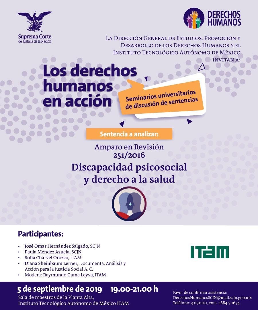 La Dirección General de Estudios, Promoción y Desarrollo de los Derechos Humanos y el Instituto Tecnológico Autónomo de México invitan a los Seminarios universitarios de discusión de sentencias.