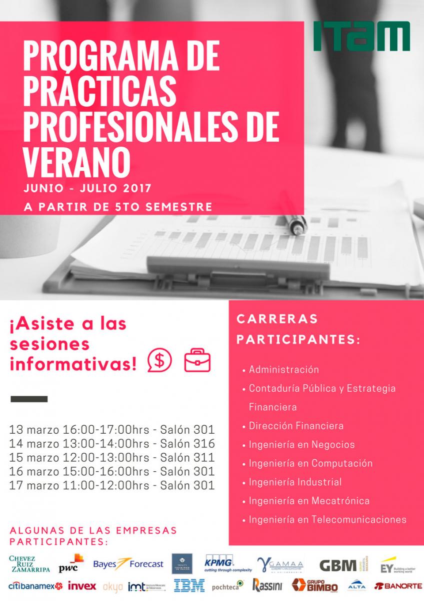 Asiste a una de las sesiones informativas sobre el programa de prácticas profesionales de verano junio - julio 2017 que se llevarán a cabo del 13 al 17 de marzo de 2017.
