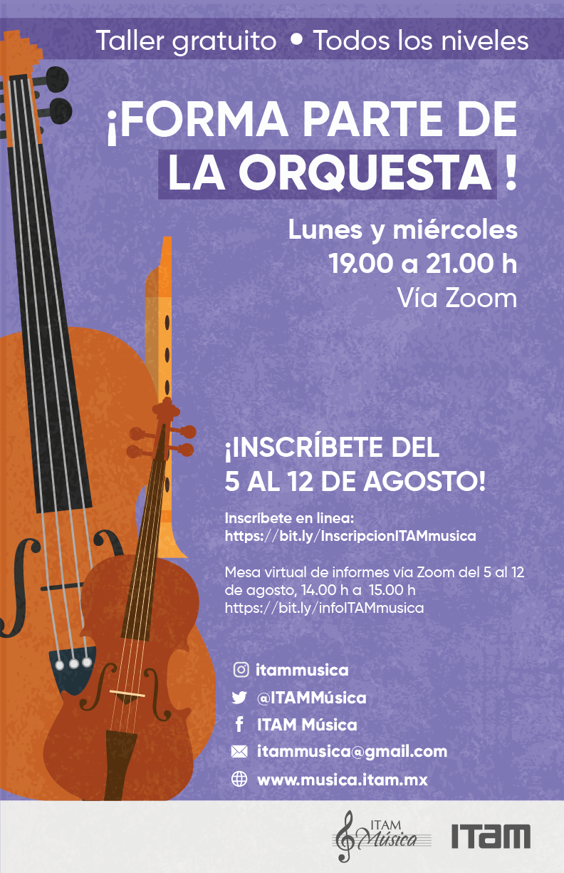 ITAM Música los invita a participar en su taller de orquesta, donde todos los niveles son aceptados y es completamente gratuito para toda la comunidad ITAM.