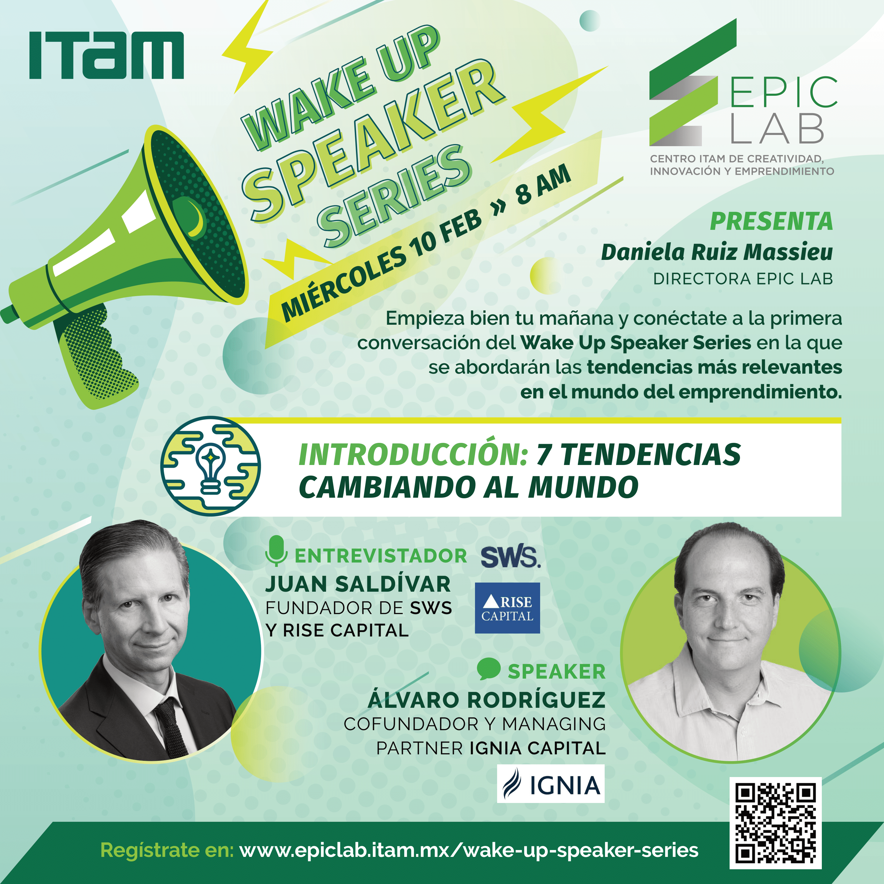 La primera sesión, será con Juan Saldivar (Fundador de SWS y RISE Capital) y Álvaro Rodríguez (Co-fundador y Managing Partner Ignia Capital).