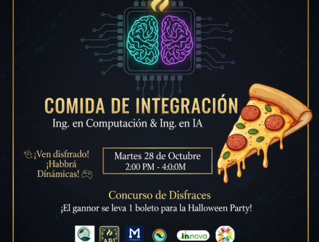 Este martes 28 de octubre, de 2:00 a 4:00 PM, tendremos nuestra comida de integración con pizza, dinámicas y concurso de disfraces.