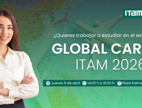 La oficina de Career Services del ITAM te invita a Global Career ITAM 2026, la primera feria internacional de empleo y movilidad académica del ITAM, diseñada para conectarte con organizaciones internacionales y abrirte puertas fuera de México.