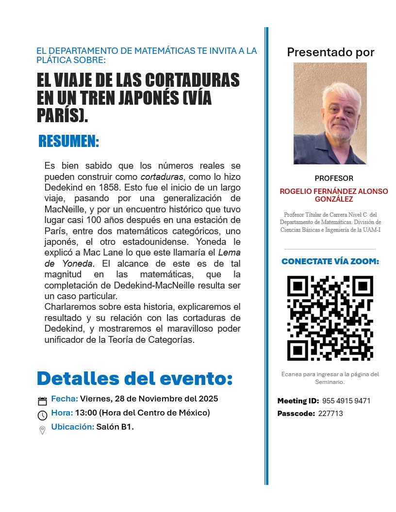 El seminario de matemáticas invita a la plática sobre: El viaje de las cortaduras en un tren japonés (vía París).