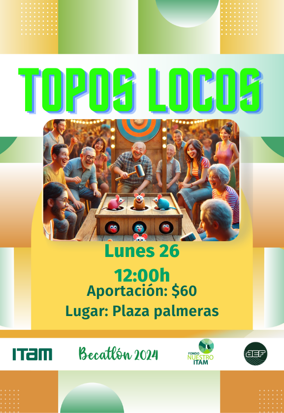 Cultiva tu espíritu filantrópico participando los Topos Locos. Cada peso recaudado en este evento se sumará al fondo de becas del ITAM. Descubre este y otros eventos que se llevarán a cabo durante el Becatlón y únete a nosotros para romper el récord de recaudación.