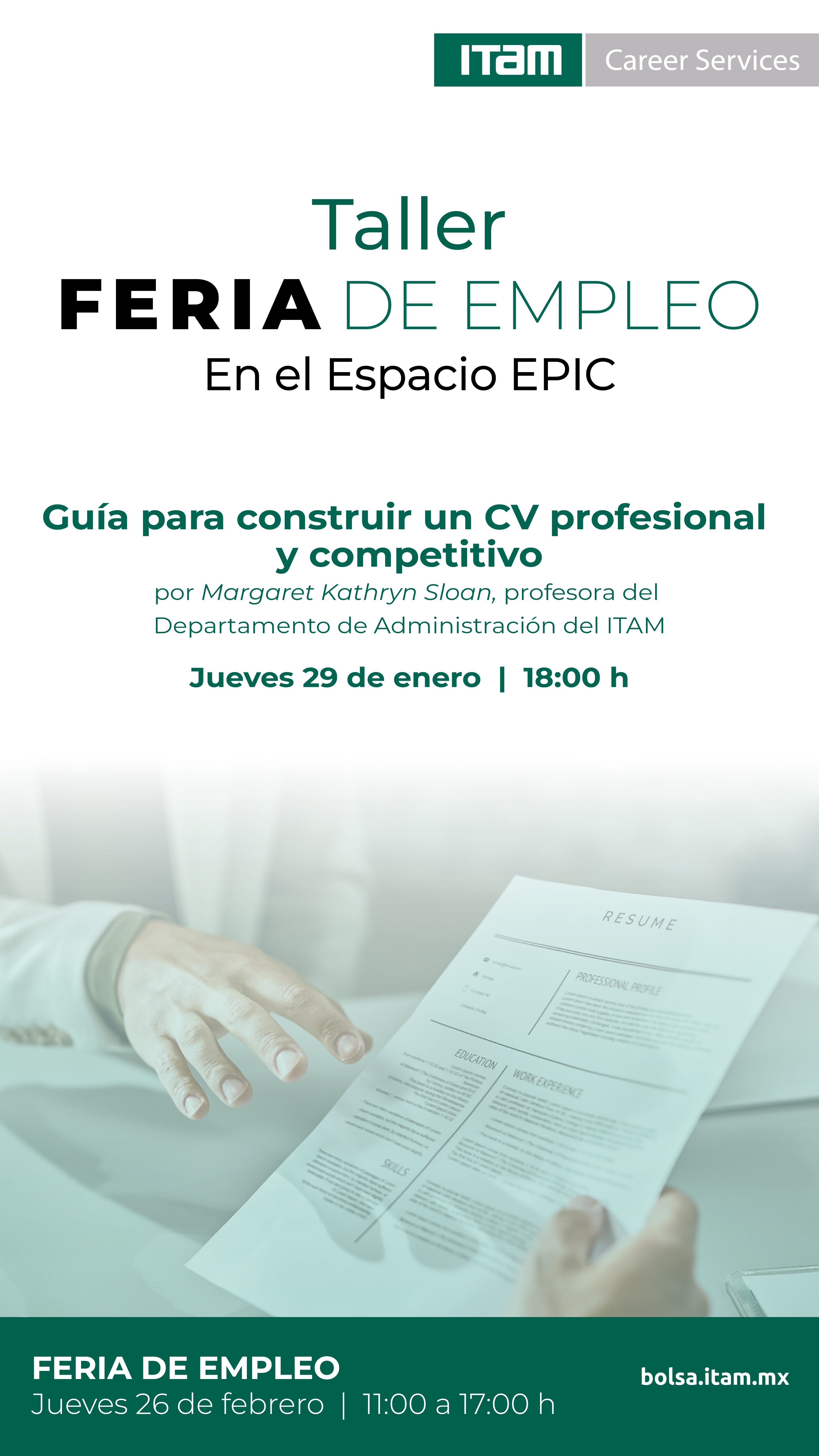 Career Services del ITAM invita al taller presencial Guía para construir un CV profesional y competitivo