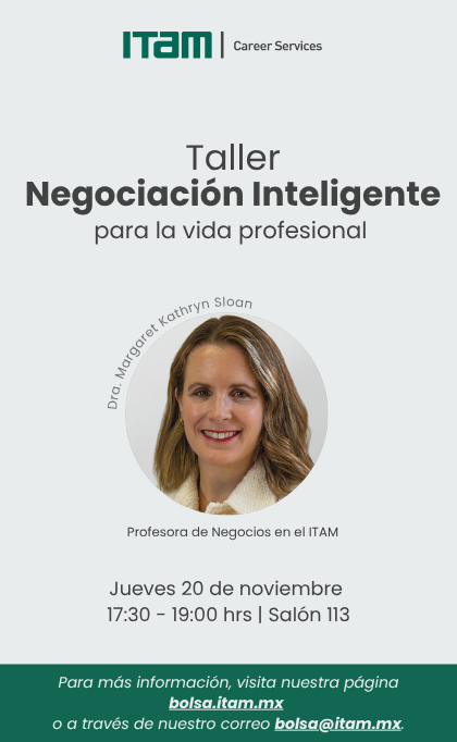 Career Services del ITAM invita al taller presencial Negociación Inteligente para la Vida Profesional