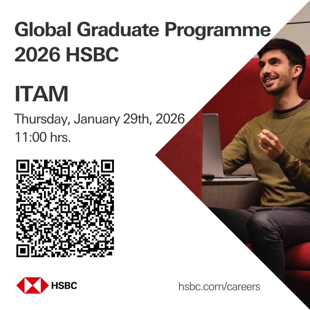 HSBC, en conjunto con la Oficina de Career Services del ITAM, te invita a su sesión de reclutamiento remota, dirigida a todos los alumnos que estén por graduarse en verano 2026 y egresados de todas las licenciaturas e ingenierías.