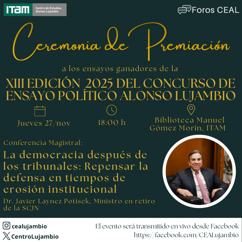 Se premiará a los ensayos ganadores de la XIII edición 2025 del Concurso de Ensayo Político Alonso Lujambio.