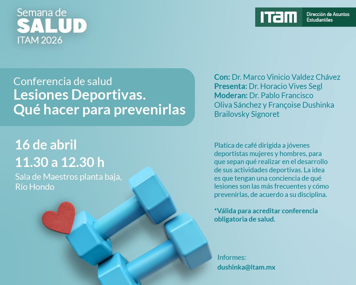 Semana de salud ITAM 2026 - * Conferencia de salud: Lesiones Deportivas. Qué hacer para prevenirlas