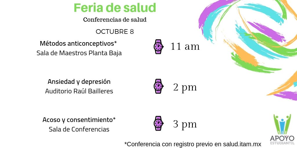 El 8 de octubre contaremos con 3 conferencias de salud que abordarán los siguientes temas: