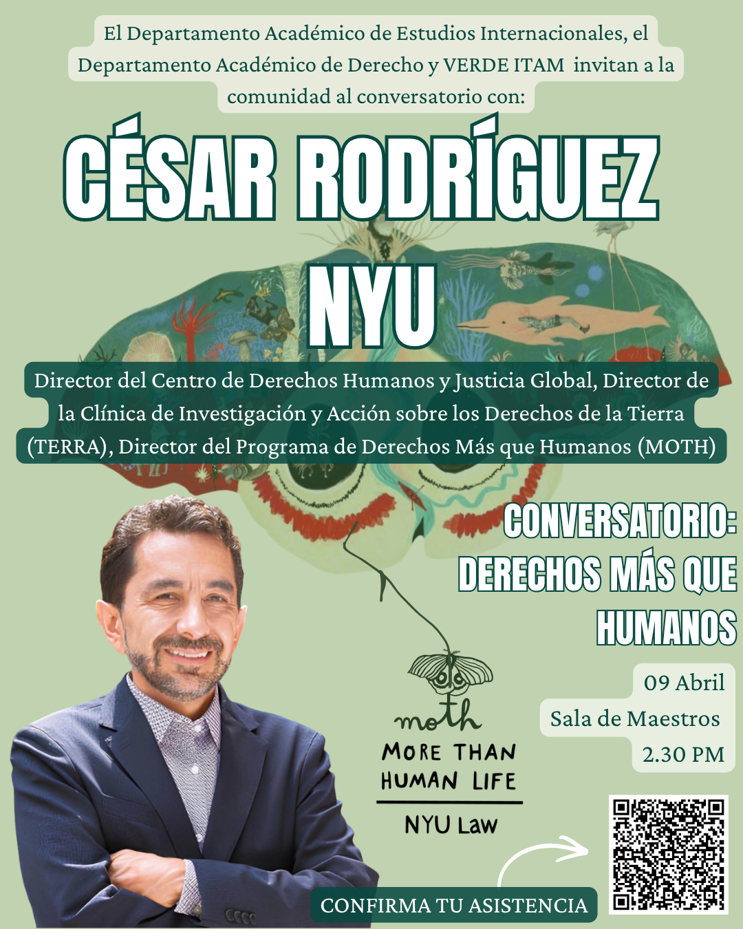 Invitamos a un conversatorio con César Rodríguez-Garavito, fundador y director del programa MOTH (More-Than-Human Life) de la Universidad de Nueva York (NYU), para explorar el concepto de los "Derechos más que humanos".