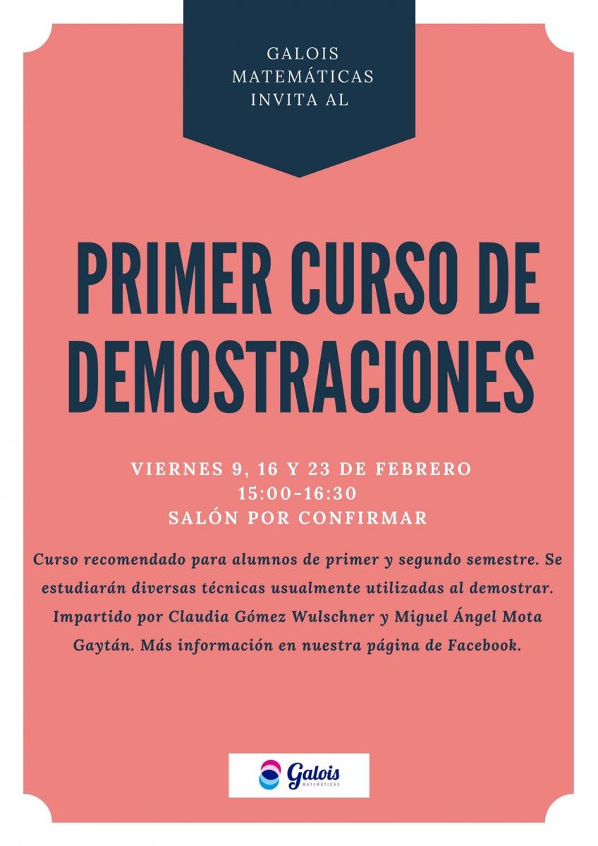Curso de demostraciones y lógica básica organizado por los alumnos de la representación de matemáticas con ayuda de profesores del Departamento Académico de Matemáticas. Enfocado a cualquier estudiante que curse materias en las que se pidan demostraciones de cualquier nivel: economía, dirección financiera, ingenierías, actuaría y matemáticas.