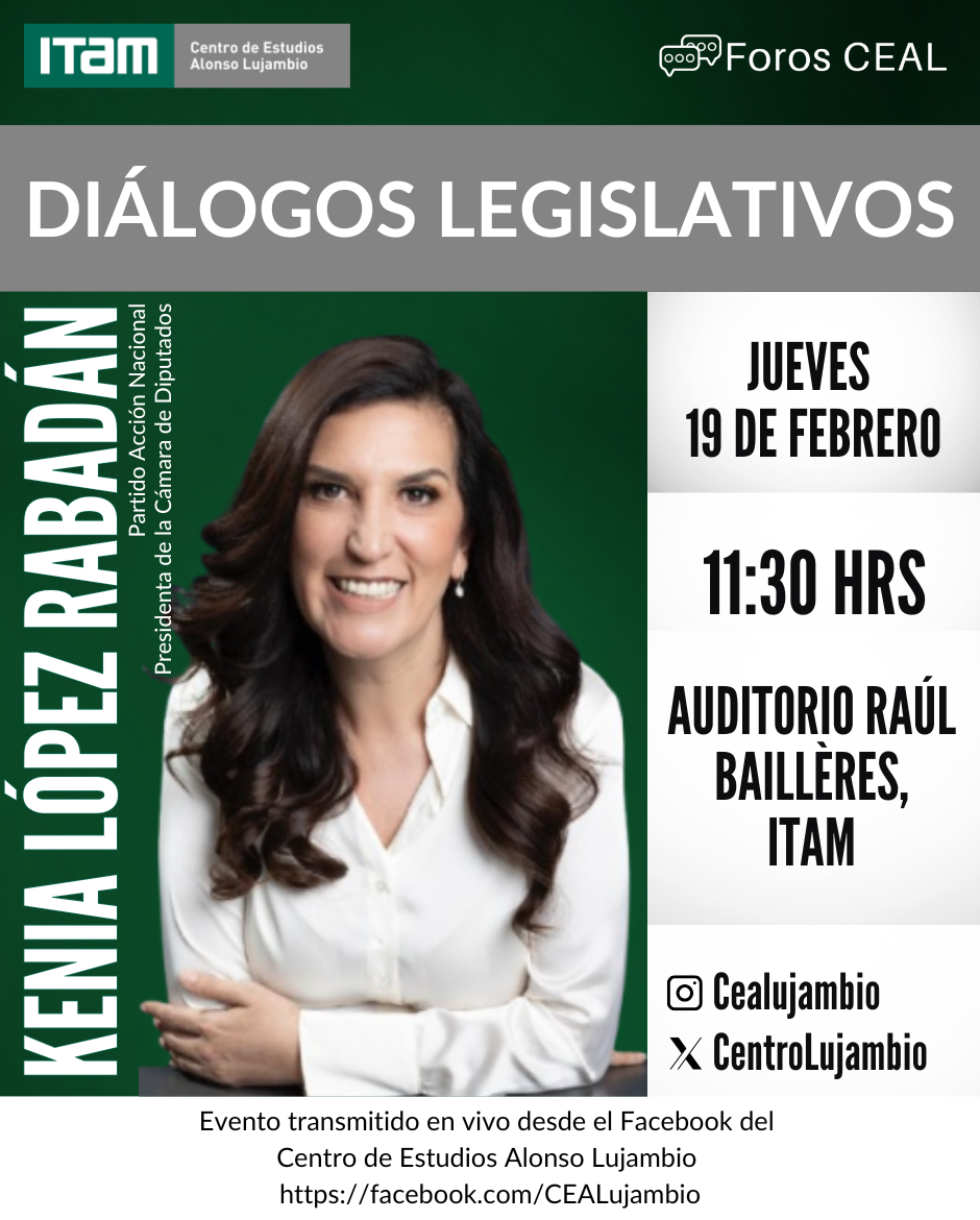 Kenia López Rabadán, presidenta de la Cámara de Diputados, visitará nuestra universidad el jueves 19 de febrero a las 11:30 h en el Auditorio Raúl Baillères. Su participación forma parte de los Diálogos Legislativos organizados por el Centro de Estudios Alonso Lujambio, un espacio para reflexionar sobre la agenda parlamentaria y los retos actuales de la representación política en México.