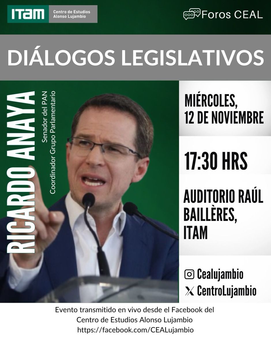 Te invitamos a nuestros Diálogos Legislativos con Ricardo Anaya, senador de la República y coordinador del Grupo Parlamentario del PAN.