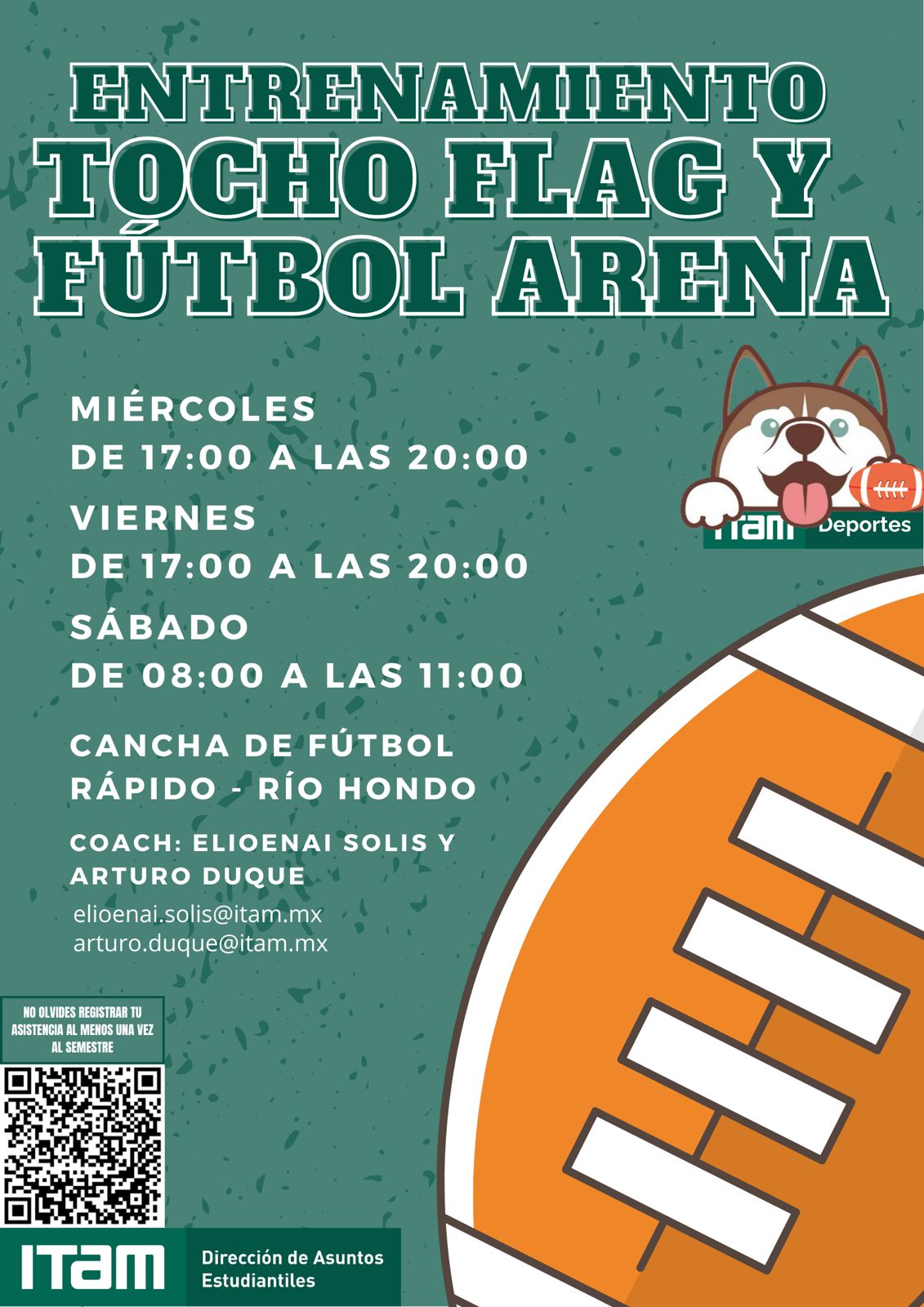Crea un espíritu de competencia, practica tocho, donde desarrollarás tus habilidades técnicas para poder correr, lanzar y atrapar el balón en cualquier posición del campo. Desarrolla tu capacidad para seguir instrucciones, retener conocimientos y aplicarlo en la práctica. Ven y juega los miércoles y viernes de 17:00 a 20:00. Los sábados acompañanos de 8:00 a 11:00.