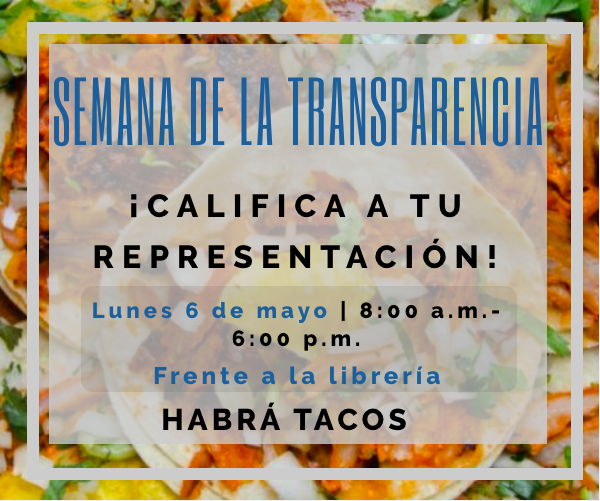 Para terminar con los eventos de la Semana de la Transparencia, los alumnos podrán evaluar a su Representación de alumnos, Consejo Estudiantil, AEF y CUHE. Esto con el fin de obtener retroalimentación del trabajo en beneficio de los alumnos en lo que va de su respectivo ejercicio.