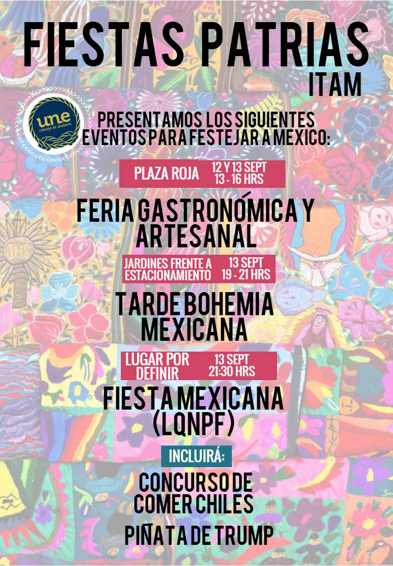Los invitamos a celebrar el mes patrio con una Feria gastronómica y artesanal este 12 y 13 de septiembre de 13:00 - 14:00 hrs en Plaza roja.