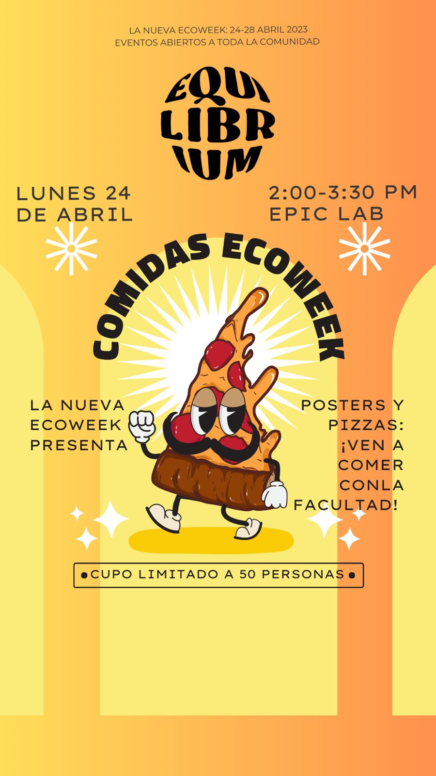 ¡No se pierdan de la inauguración de la Nueva Ecoweek este lunes 24 de abril a las 2:00! Habrán pizzas, bebidas, conferencias y mucho más.