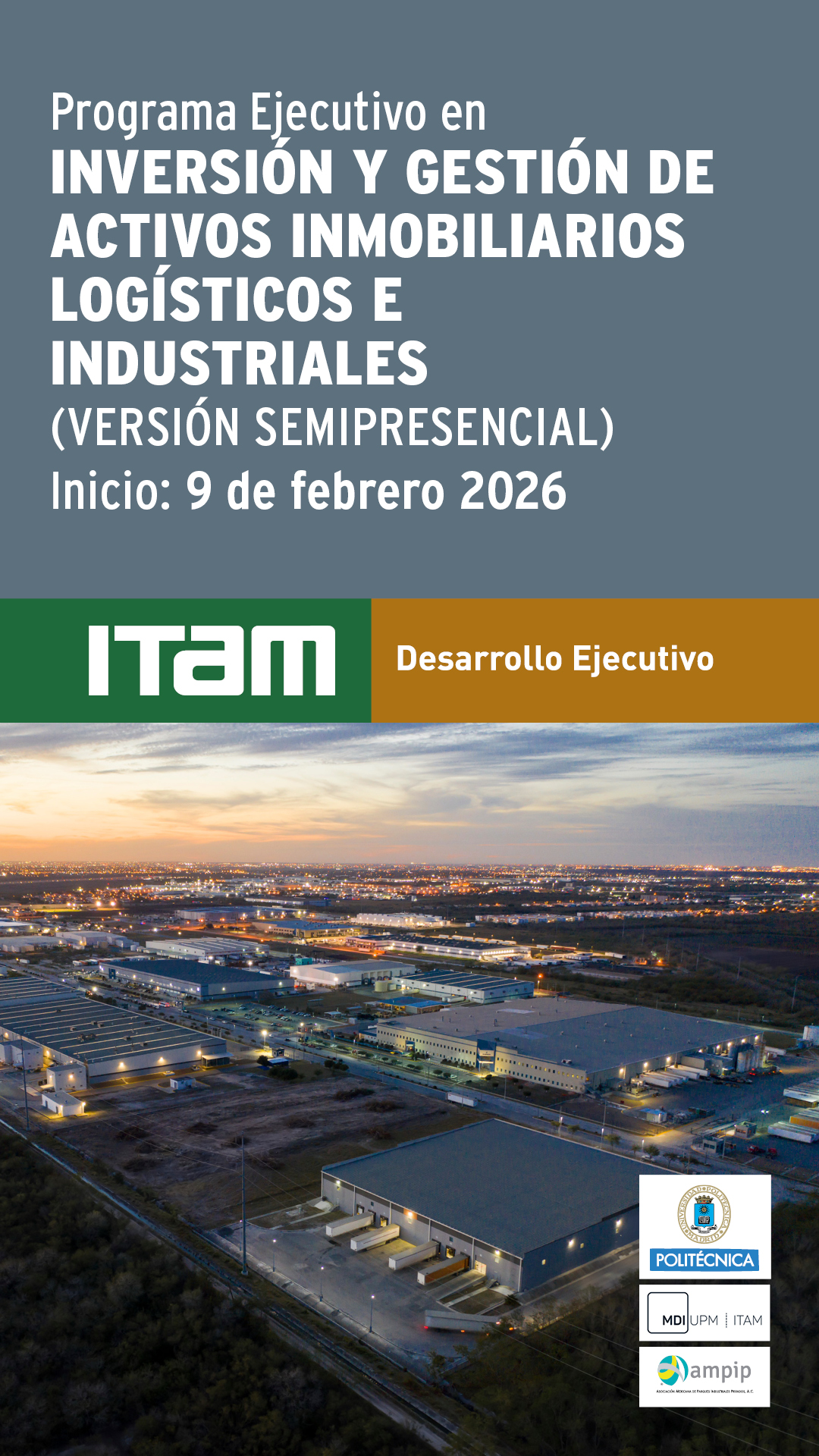 AMPIP, el ITAM y la UPM te invitan a un programa de doble titulación diseñado para dominar los activos industriales, logísticos y de centros de datos.