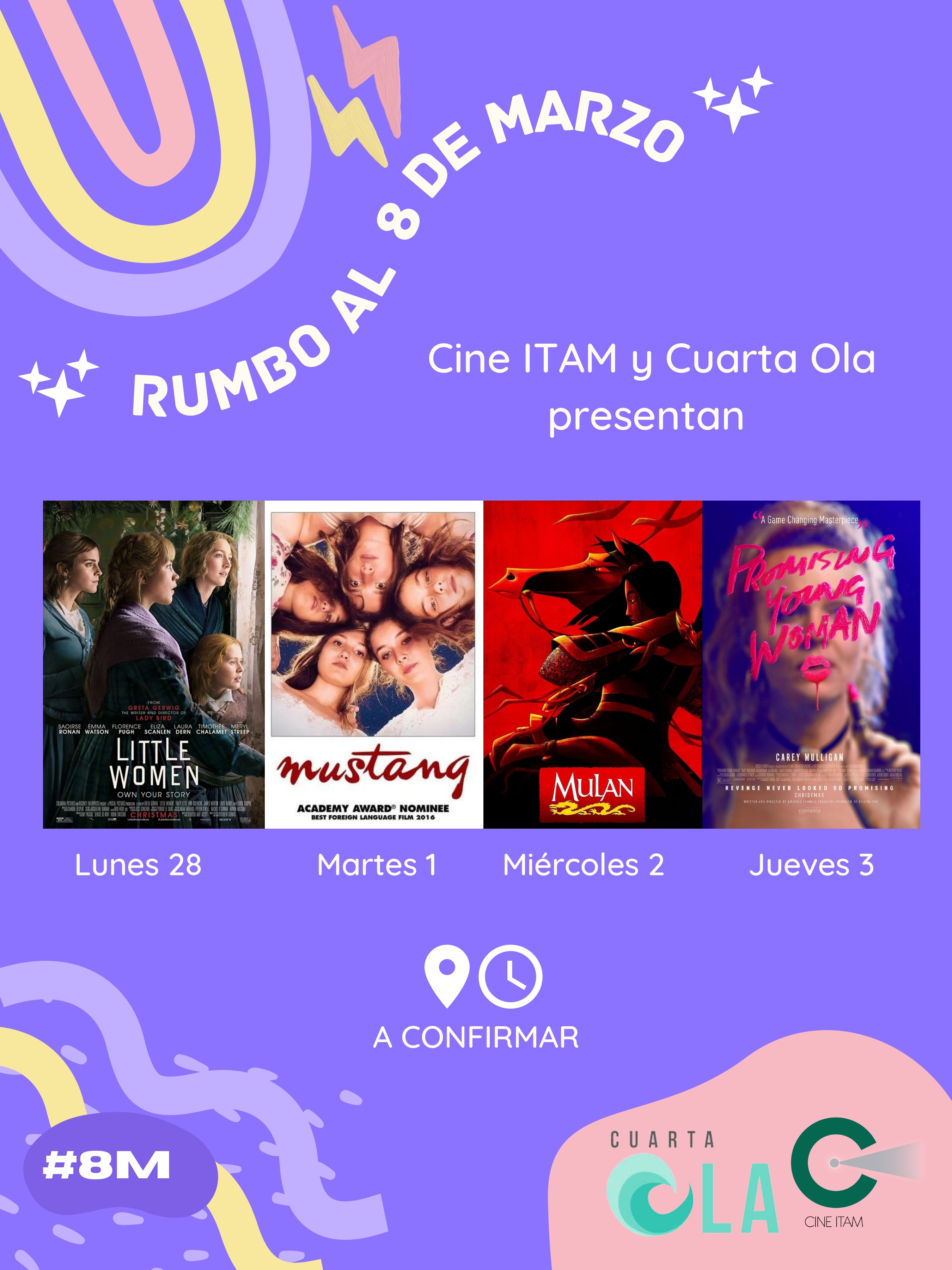 Cuarta Ola y Cine ITAM presentan el Ciclo: Rumbo al 8 de Marzo, centrado en mostrar obras feministas modernas del cine realizadas por talentosas directoras con distintos perfiles.