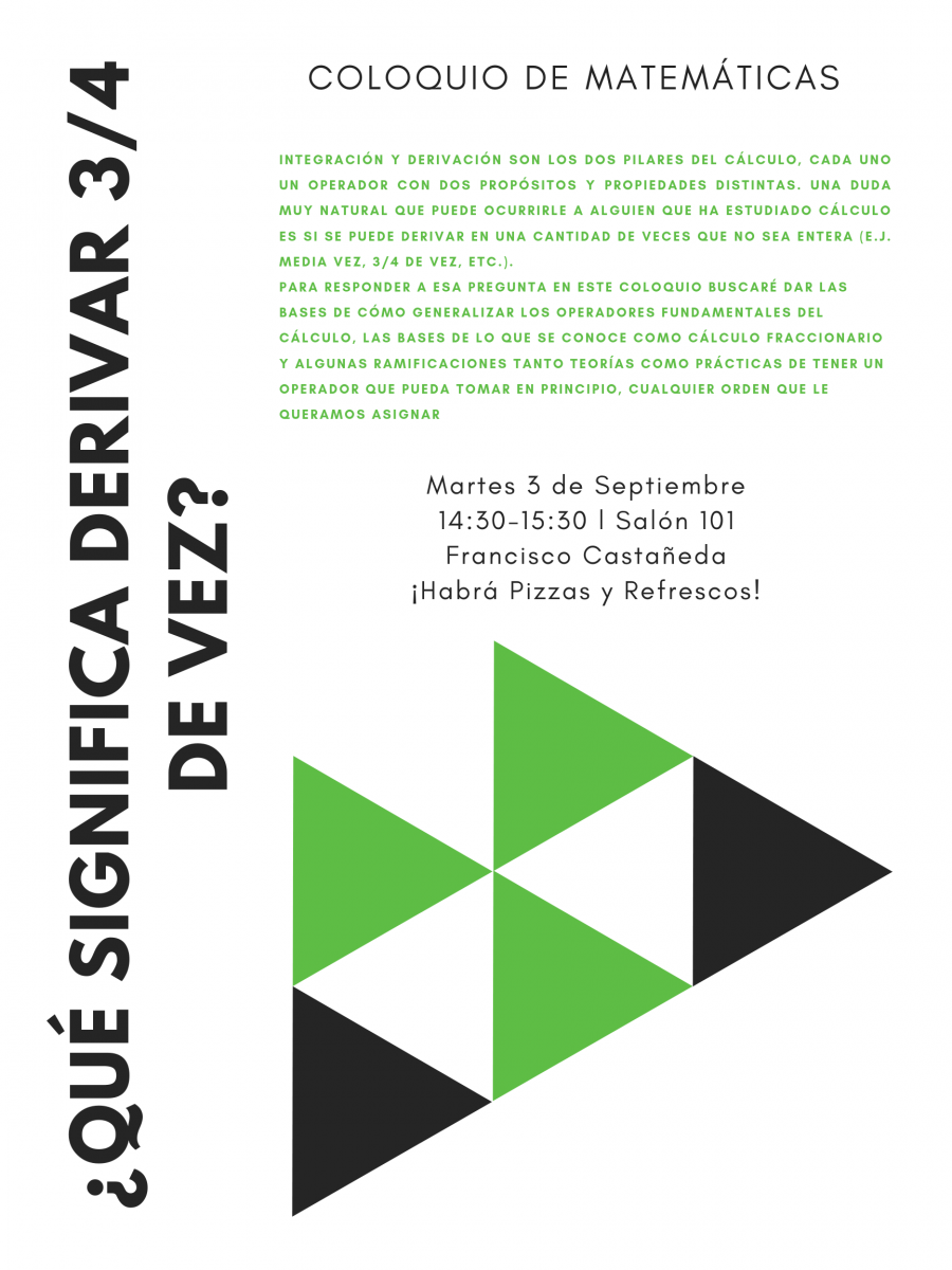 Para responder a esa pregunta en este coloquio buscaré dar las bases de cómo generalizar los operadores fundamentales del cálculo, las bases de lo que se conoce como cálculo fraccionario y algunas ramificaciones tanto teorías como prácticas de tener un operador que pueda tomar en principio, cualquier orden que le queramos asignar