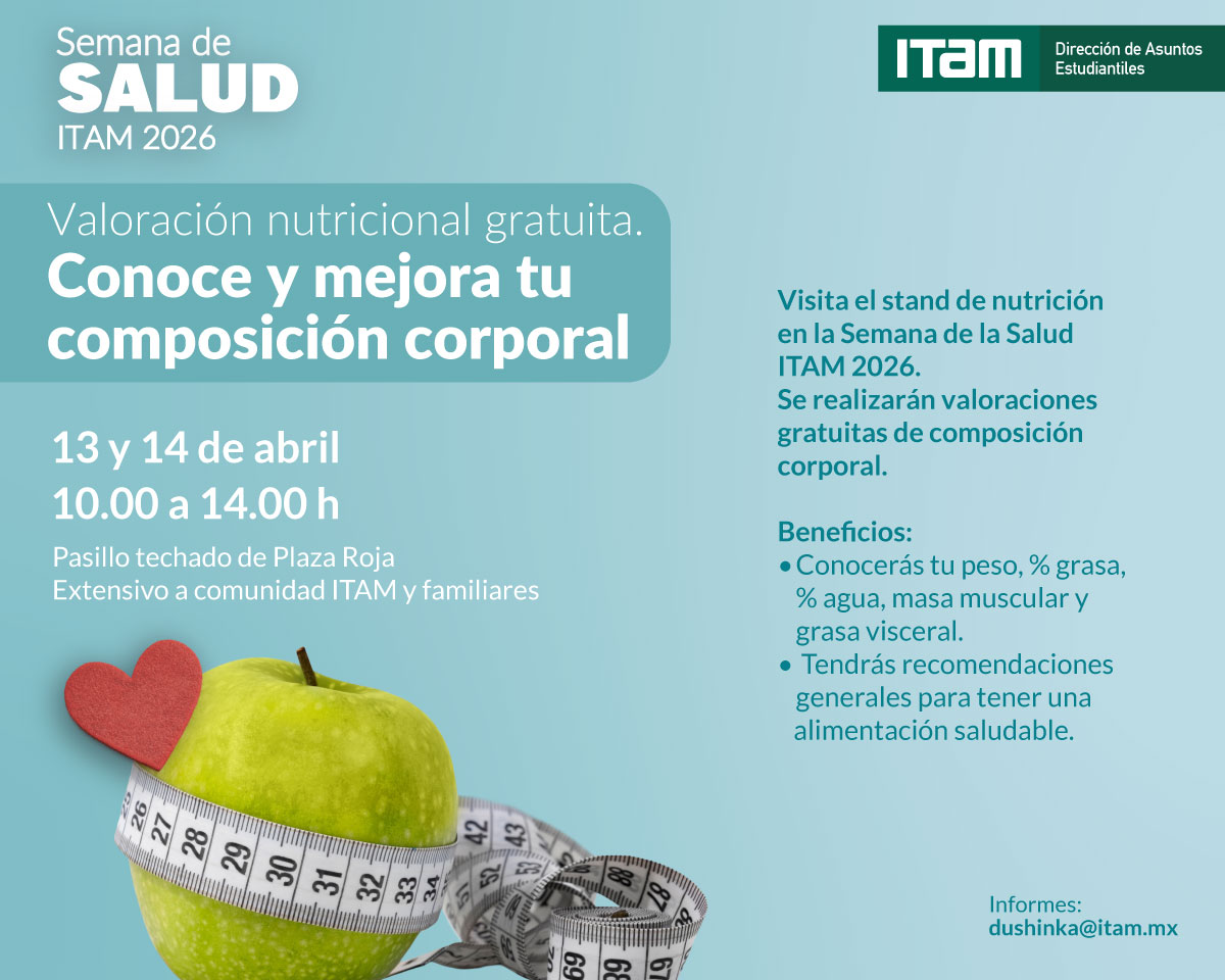 * Semana de salud ITAM 2026: Valoración nutricional gratuita. Conoce y mejora tu composición corporal