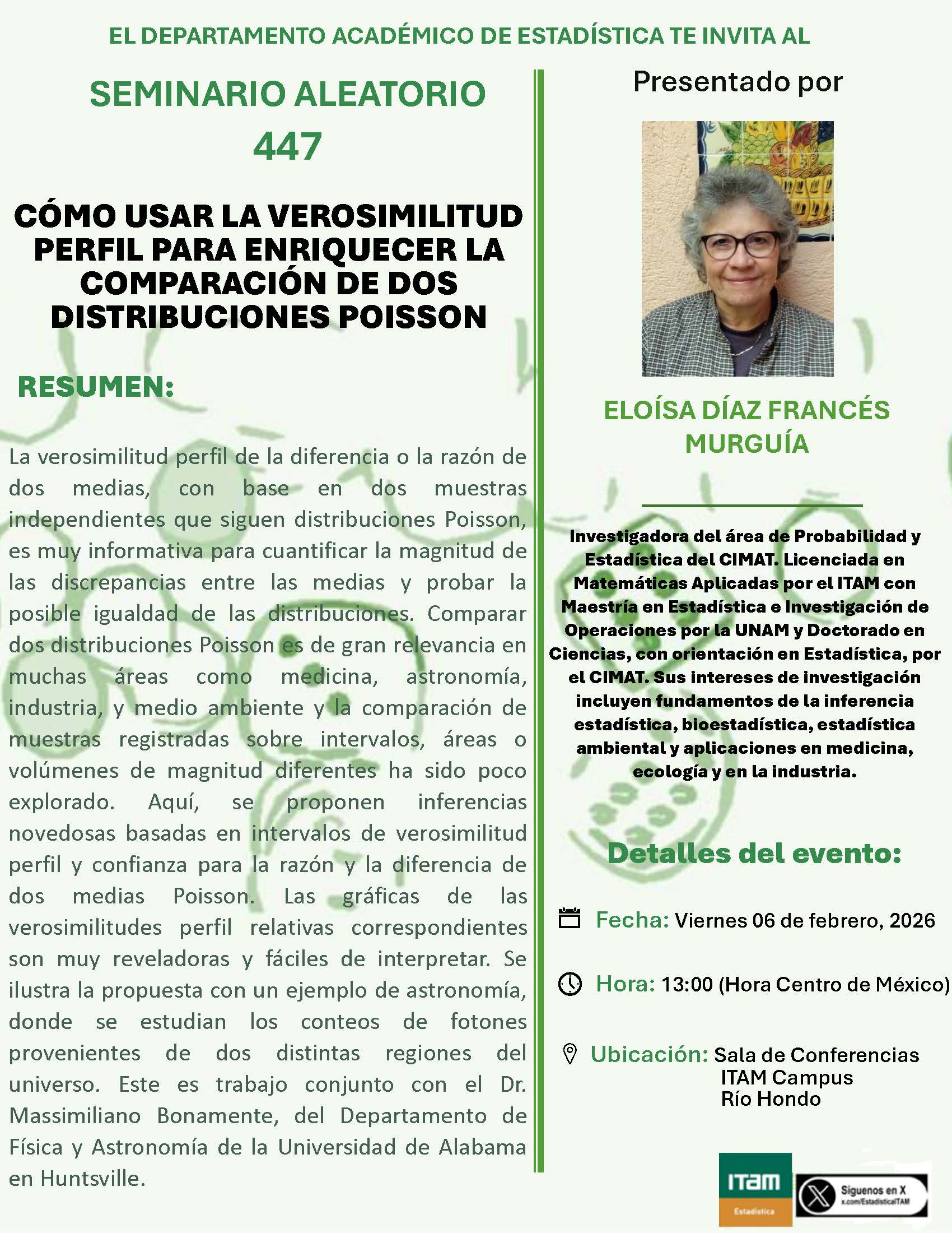 Investigadora del área de Probabilidad y Estadística del CIMAT. Licenciada en Matemáticas Aplicadas por el ITAM con Maestría en Estadística e Investigación de Operaciones por la UNAM y Doctorado en Ciencias, con orientación en Estadística, por
