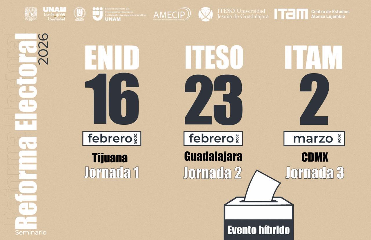 Te invitamos a seguir la agenda del Seminario sobre la Reforma Electoral 2026, el cual se llevará a cabo de manera presencial e híbrida en tres sedes: