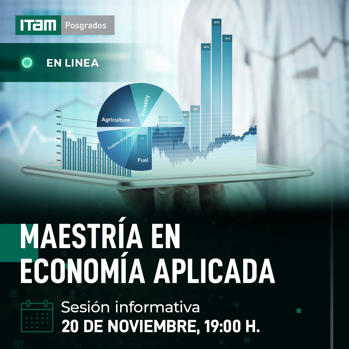 Únete a la sesión informativa virtual el próximo jueves 20 de noviembre a las 19:00 horas, y descubre por qué la Maestría en Economía Aplicada es una de las mejores opciones académicas en México.