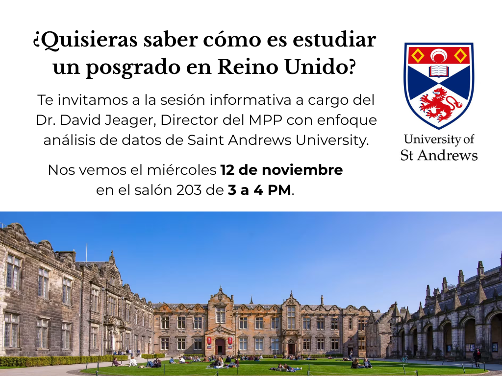 La oficina de vinculación internacional, junto con ST. ANDREW UNIVERSITY, te invitan a la sesión informativa sobre los posgrados en Reino Unido.