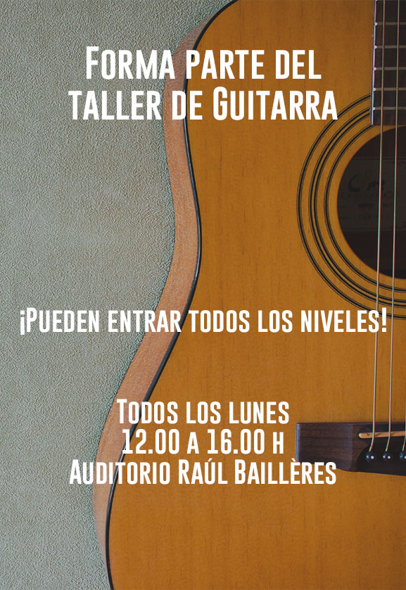 Te invitamos a formar parte del taller de guitarra que se lleva a cabo cada lunes de 12 a 4 pm. en el auditorio Raúl Baillères