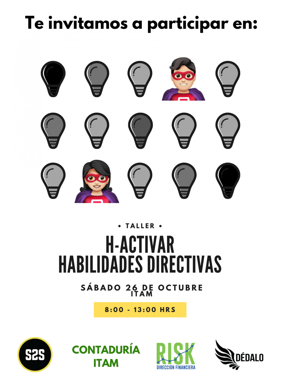 Las Representaciones de la licenciatura en Contaduría Pública y Estrategia Financiera, Dirección Financiera y Administración te invitan a participar en el Taller H-Activar Habilidades Directivas.