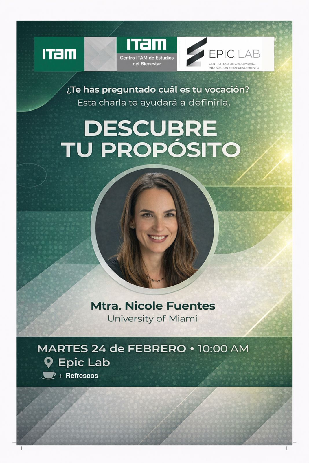 ¿Te has preguntado cuál es tu vocación? Esta videoconferencia te puede ayudar a definirla. La Mtra. Nicole Fuentes es economista y especialista en psicología positiva. Es docente en la Universidad de Miami y autora del libro "Descubre tu propósito: a ti ¿qué te mueve?" (2012, Urano)