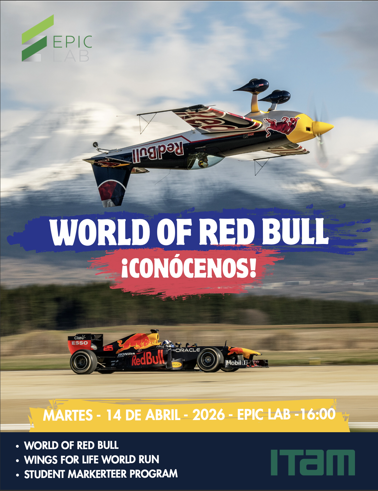 Este martes 14 de abril, el EPIC Lab del ITAM se convierte en el epicentro de una de las experiencias más intensas del año: el World of Red Bull.