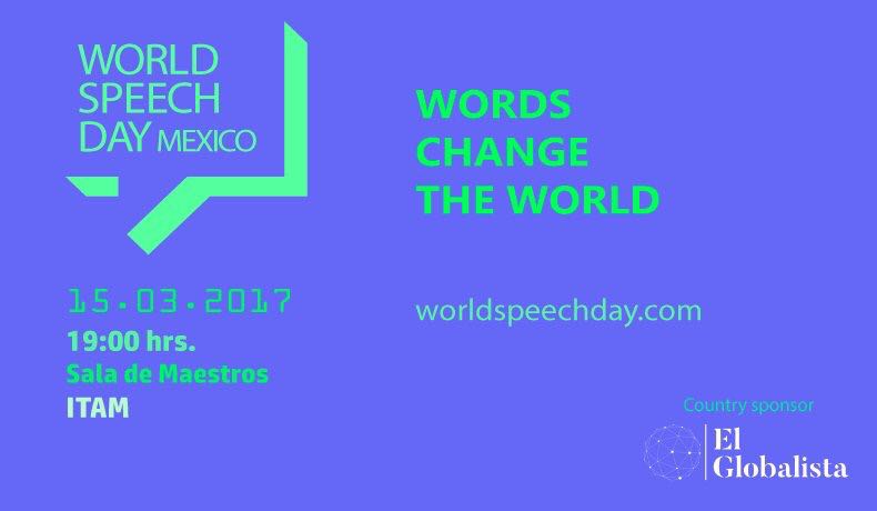 Tenemos la convicción de que los discursos cambian al mundo, a TU mundo. Creemos en el potencial del ser humano y de la palabra como motores de cambio. El descubrimiento de nuevas voces en la sociedad, vengan de donde vengan, sin importar raza, credo, género o situación social, nos permite encontrar soluciones a los problemas de nuestras comunidades, países y continentes. Queremos encontrar las voces del cambio en todo el mundo. WORLD SPEECH DAY será la oportunidad para que las ideas de voces inesperadas lleguen a más de 90,000 jóvenes alrededor del mundo (90 países), en un evento continuo de live streaming simultáneo en los cinco continentes.