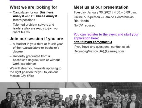 Bain & Company, en conjunto con la Oficina de Career Services del ITAM te invita a su sesión de reclutamiento presencial, dirigida a todos los...