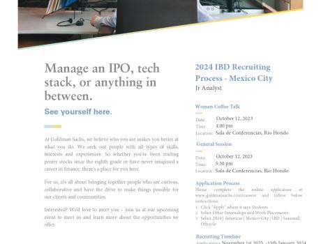 Mastercard, en conjunto con la Oficina de Career Services del ITAM te invita a su sesión de reclutamiento presencial, dirigida a todos los alumnos de...