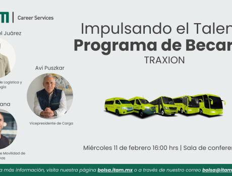 Traxion, en conjunto con la Oficina de Career Services del ITAM te invita a su sesión de reclutamiento presencial, dirigida a todos los alumnos de...