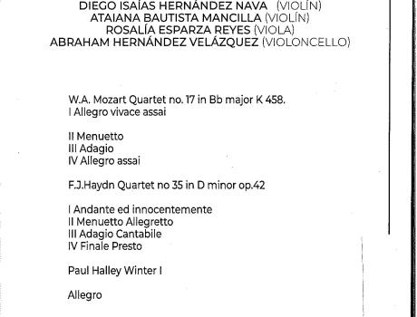 ITAMúsica invita al cuarteto de cuerdas Nahui que se llevará a cabo el día miércoles 22 de noviembre a las 14:30 h. en el Auditorio Raúl Baillères.