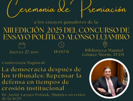 Se premiará a los ensayos ganadores de la XIII edición 2025 del Concurso de Ensayo Político Alonso Lujambio.