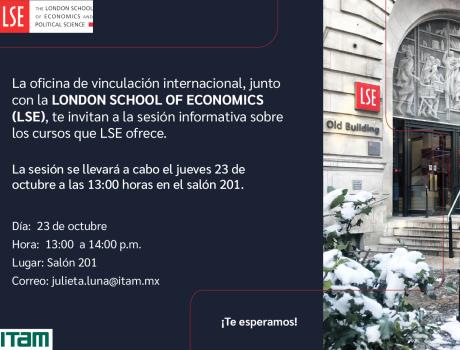 La oficina de vinculación internacional, junto con la LONDON SCHOOL OF ECONOMICS (LSE), te invitan a la sesión informativa sobre los cursos que LSE ofrece.