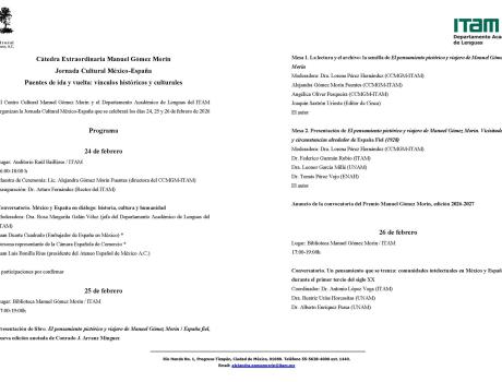 En el marco de la Cátedra Extraordinaria Manuel Gómez Morin se realiza la Jornada Cultural México-España. Puentes de ida y vuelta: vínculos históricos y culturales.